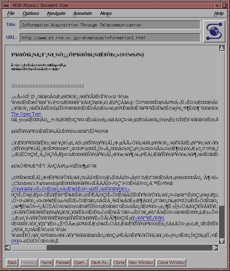 何のことだかこれじゃ分からんっすね。要するに、本来ならこうあるべきページがこんな感じで雑誌に掲載されてた、っつーことっす。これはNetscapeな奇麗なショットじゃないし、例によってMosaicのヘタクソでTable部分がヘロヘロだけどさ。:-b